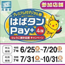 兵庫県 プレミアム付デジタル券 はばタンPay+ 4弾使えます!